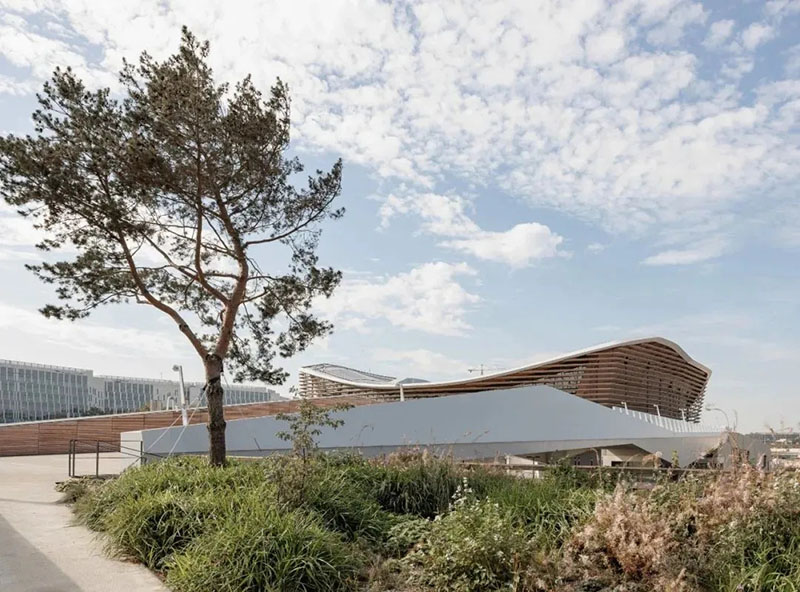 項(xiàng)目位于巴黎法蘭西體育場(chǎng)旁,是2024年奧運(yùn)會(huì)建造的唯一永久性建筑,用于在 2024年巴黎奧運(yùn)會(huì)期間舉辦跳水和花樣游泳比賽。它還將用于水球資格賽,并將向殘奧會(huì)運(yùn)動(dòng)員開放作為訓(xùn)練設(shè)施。