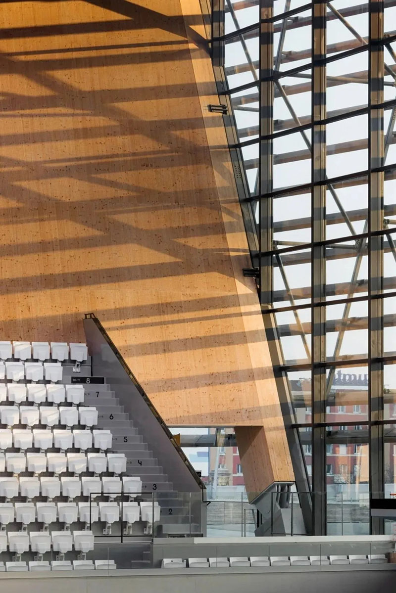 水上運(yùn)動(dòng)中心的結(jié)構(gòu)主要由木材建造,包括俯沖在游泳池上方的80米長(zhǎng)的屋頂。頂部布滿太陽能電池板,預(yù)計(jì)它將產(chǎn)生該建筑所需電力的 20%。曲線的造型為泳池三側(cè)的觀眾看臺(tái)創(chuàng)造了空間,比賽期間最多可容納 5,000 人。每個(gè)座椅由回收塑料制成。該中心旨在促進(jìn)體育活動(dòng)和社交互動(dòng),周圍種植了102棵樹木和灌木,通過一座立交橋與法蘭西體育場(chǎng)相連,立交橋的設(shè)計(jì)更像是一個(gè)廣場(chǎng),而不是一座人行天橋,這使其成為一個(gè)交流場(chǎng)所,而不僅僅是一條通道。比賽結(jié)束后,水上運(yùn)動(dòng)中心將成為一個(gè)綜合運(yùn)動(dòng)中心,學(xué)習(xí)游泳、與專業(yè)運(yùn)動(dòng)員并肩訓(xùn)練、板球、瑜伽和健身、 5×5 足球融為一體的創(chuàng)新型體育綜合體。