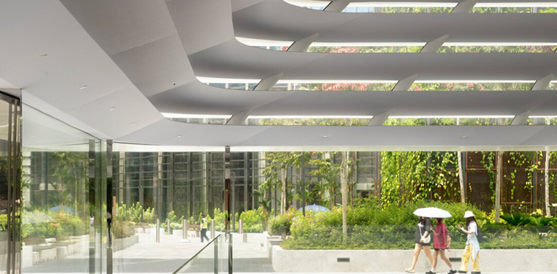 這座設計為玻璃圓頂?shù)慕ㄖ?7英尺(約26米)的方形屋頂在上升時從正方形過渡到圓形幾何形狀,這種流體設計還適應了馬來西亞的熱帶氣候。鰭片不僅提供陰涼,控制太陽輻射,還能確保舒適的室內環(huán)境。