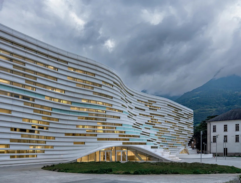 這是瓦萊達(dá)奧斯塔大學(xué)新校區(qū),舊軍營建筑變身奧斯塔市文化教育新地標(biāo),也是意大利首批零能源建筑。