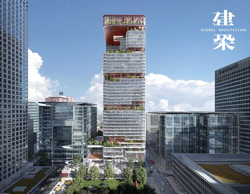 重新設(shè)計(jì)的摩天大樓設(shè)有多個(gè)凸出的露臺(tái),為員工提供休息空間。頂層部分通過精心設(shè)計(jì),呈現(xiàn)出后退式露臺(tái)的結(jié)構(gòu),使其仿佛“漂浮”于下方樓層之上,由細(xì)長(zhǎng)的柱子支撐。此外,設(shè)計(jì)還包括一個(gè)室外籃球場(chǎng)和一座粉紅色的室外螺旋樓梯,為未來入駐的企業(yè)創(chuàng)造一個(gè)獨(dú)特的工作場(chǎng)所。
