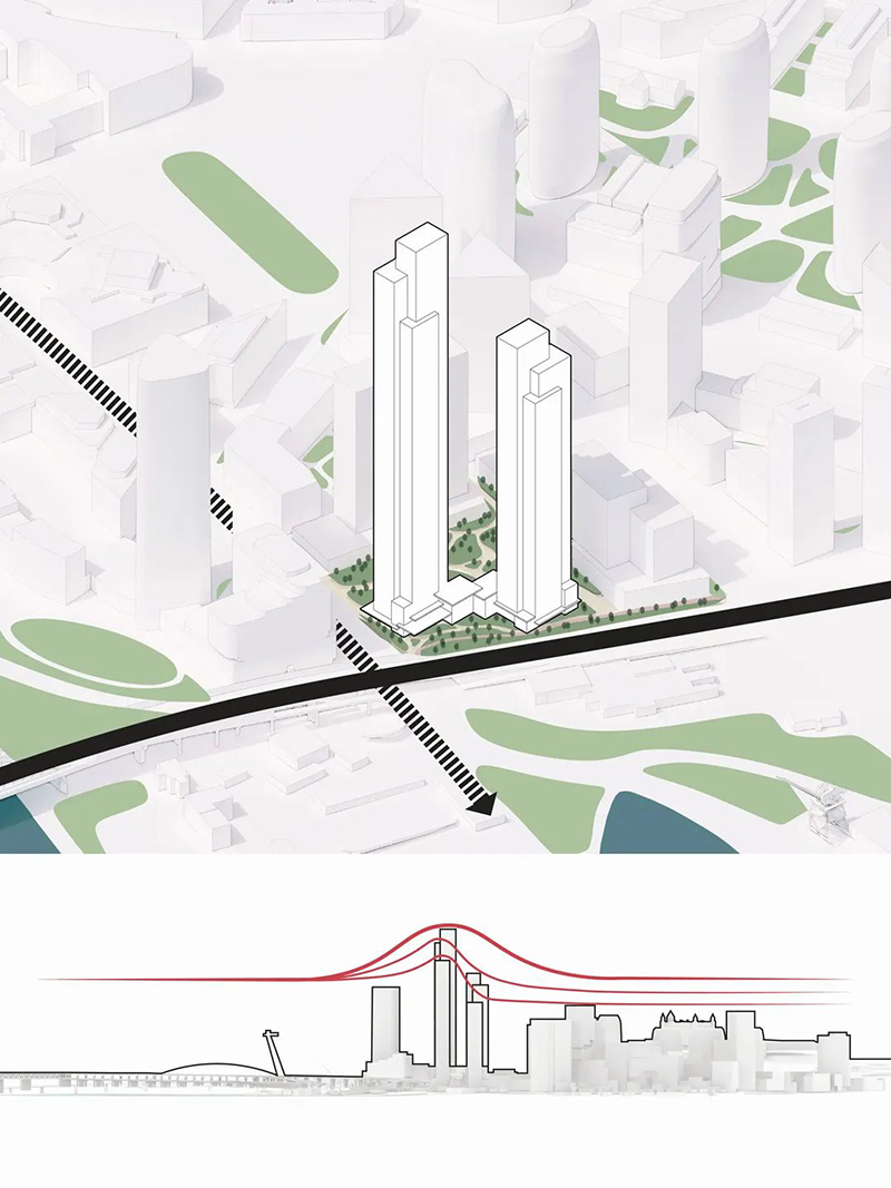 項目位于斯洛伐克首都布拉迪斯拉發(fā),這兩座住宅塔樓分別高260米和184米,將創(chuàng)造1,100多套新住宅。