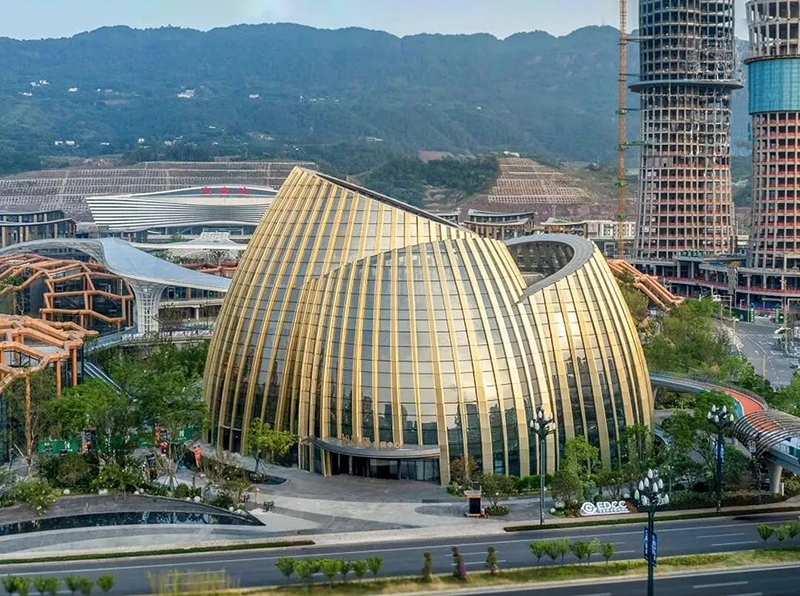 場(chǎng)館坐落于高鐵宜賓站門(mén)戶區(qū),總建筑面積約12000㎡,共有5層,包含大型數(shù)字藝術(shù)展覽、沉浸體驗(yàn)空間、文創(chuàng)空間、餐飲空間等多業(yè)態(tài)空間。