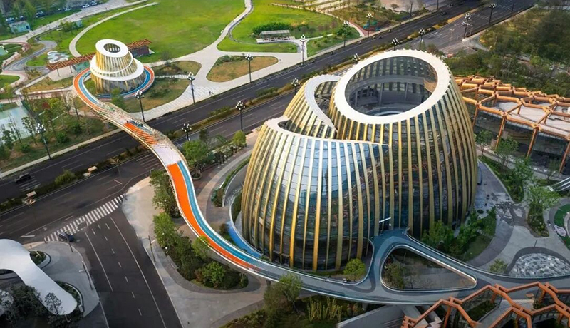 建筑自身成為一個(gè)系統(tǒng),扎根于竹林掩映的公園之中,彰顯出蓬勃生長(zhǎng)的生命力。